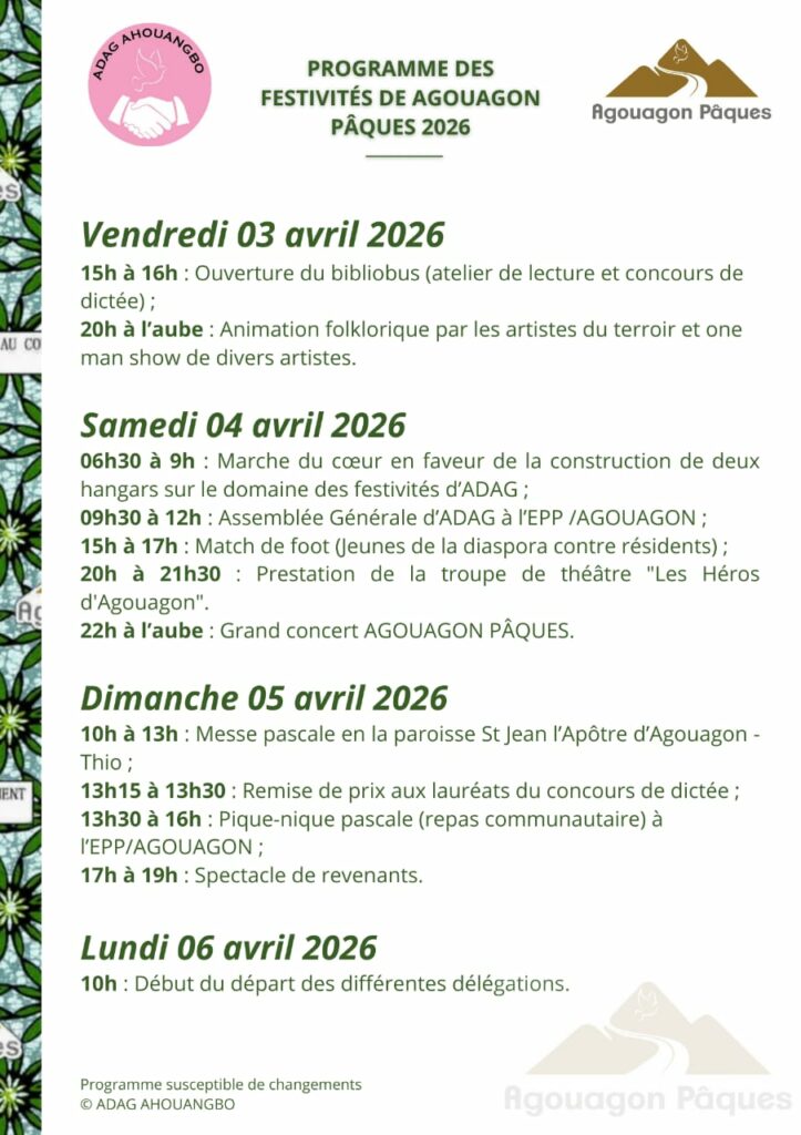 2. Agouagon Pâques 2026 : Le programme